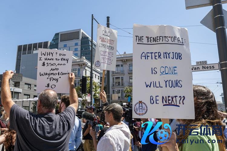 2023年8月7日,好意思国旧金山,出租车工东谈主定约成员和提拔者抗议扩大无东谈主驾驶汽车运营