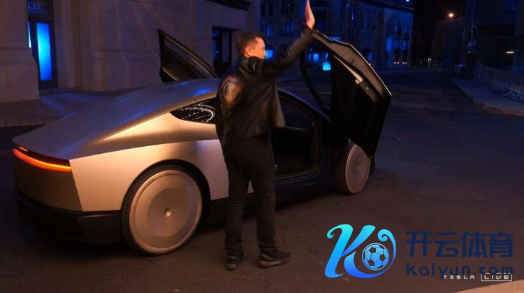 10月11日,特斯拉发布会上,马斯克在无东谈主驾驶出租车Cybercab旁挥手问候
