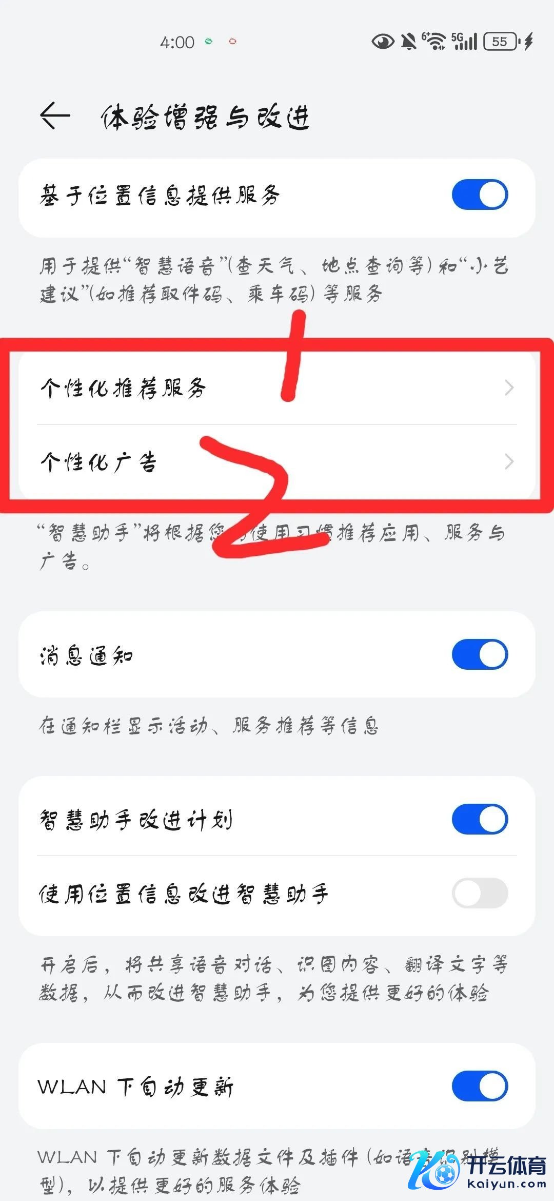 关闭贤惠助手的个性化告白和保举
