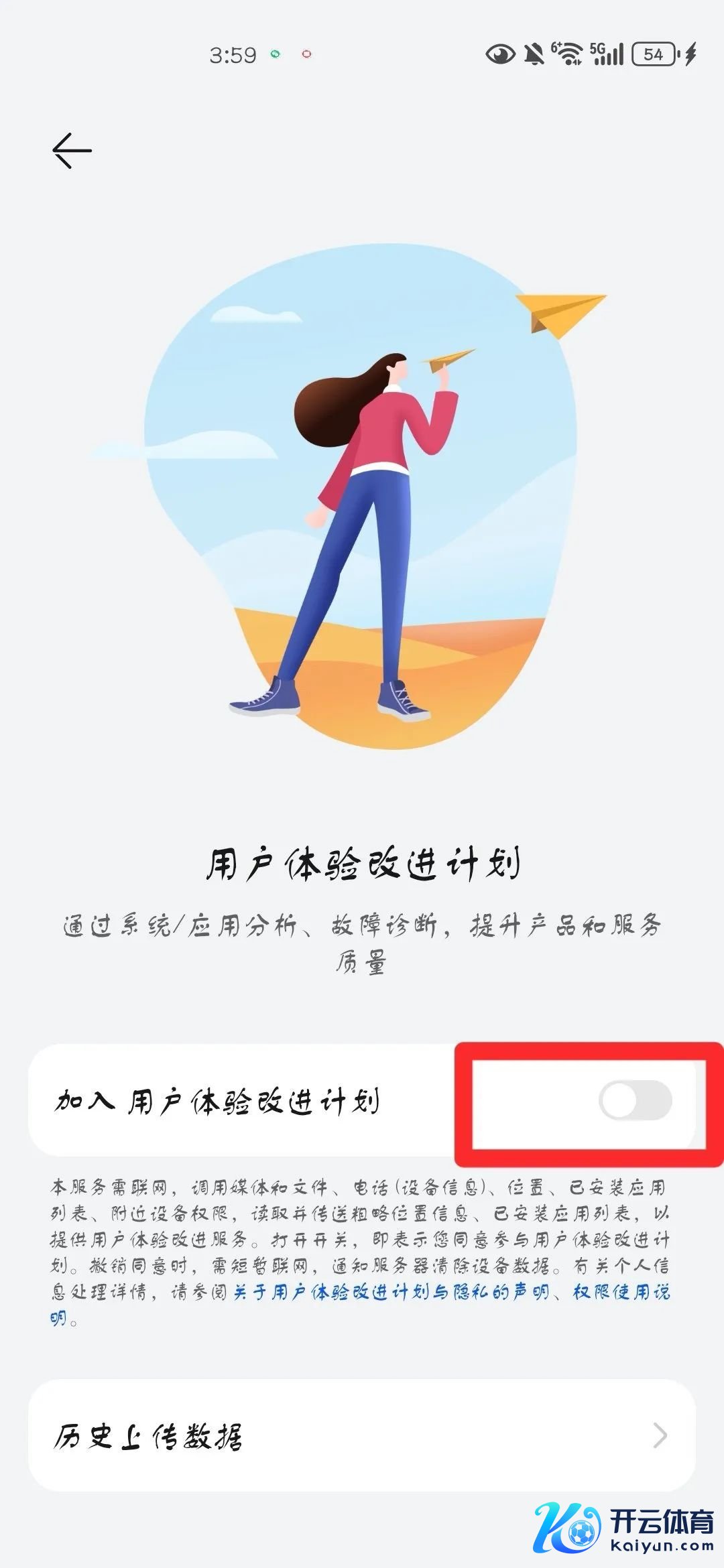 在系统与更新界面中,找到“用户体验考订盘算推算”选项并投入。