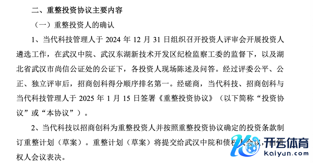 阐明公告,招商科创将开采招商局人命科技(武汉)有限公司参与本次重整,投资总数为118亿元,悉数限制现代科技握有的公司23.70%股权。