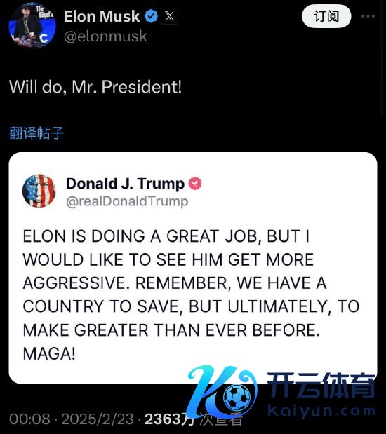 马斯克在X平台恢复:“我会的,总统先生!”