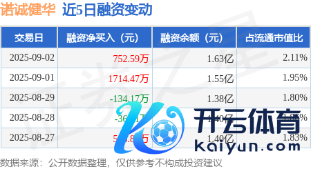 本站音问,9月2日,诺诚健华(688428)融资买入3758.55万元,融资偿还3005.96万元开云体育,融资净买入752.59万元,融资余额1.63亿元。