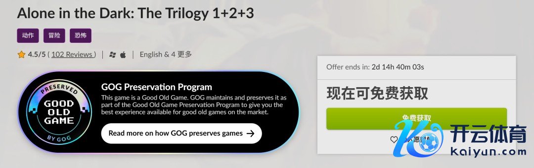 GOG现可免费领取经典恐怖游戏《鬼屋魔影三部曲(Alone in the Dark: The Trilogy 1+2+3)》。戒指发稿时,免费领取时期还剩下2天14小时。