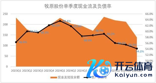 金钱端戒指最新财报期,牧原股份的欠债率为54.2%,相较于2024年头,下落了梗概10pct。较2025年头下落4.53pct,欠债总数较年头下落171亿元。