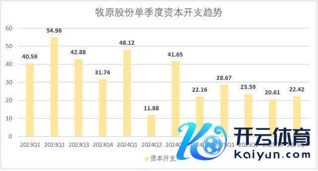 本钱开支层面,正如前文所言,功绩会中惩办层主动下调了2026年本钱开支的预期,其实从2025年开年以来,牧原就照旧诊疗了本钱开支节律,全年累计本钱开支95.3亿,较2024年下滑了28.5%。