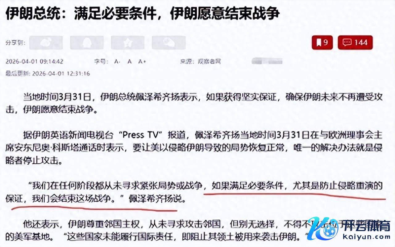 许多东说念主看到局势稍有松弛,便以为安全就此到来。可是,历史警戒告诉咱们,最危急的技巧时常是快停却没停的阶段。原因有三:当先,两边都但愿在研讨前争取更多的筹码,谁都但愿在研讨桌上占得优势;其次,误判的风险加多,任何一次失慎的擦枪走火,都可能重新燃烧突破;临了,外部势力的介入使得局势变得愈加复杂,来自不同国度的态度不同,这加重了局势的不笃定性。正如有网友所说:真实的和平,不是说停,而是能停。这场局势的变化,看似倏得,实则早有伏笔。马苏德·佩泽希王人扬的悦目截止,并非出于退守,而是为了重新布局;唐纳德·特朗普的准备收手,并非意味着成效,而是在普遍的压力下作念出的取舍。当两边都初始谈论截止,真实的较量才刚刚参加一个愈加复杂的阶段。战争拼的是力量,但要截止战争,则拼的是智谋。明天会不会息兵?关节不在于谁先启齿,而是看谁悦目陈旧。而对鄙俚匹夫来说,最进攻的小数其实很简便:但愿这场博弈,大要走向真实的降温开云体育(中国)官方网站,而不是下一轮升级的前奏。