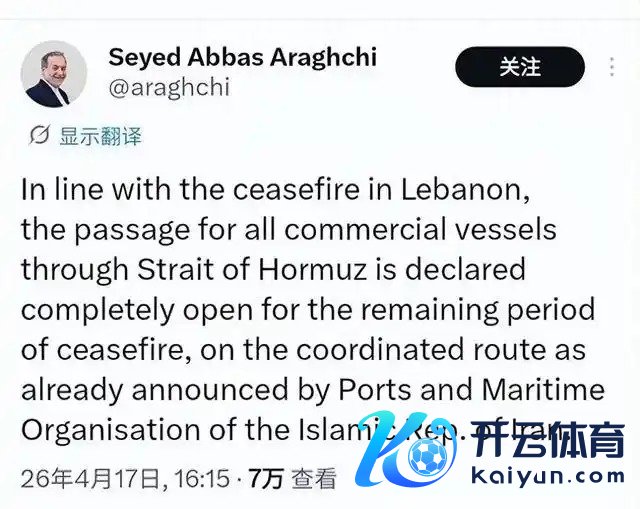 当地本事17日下昼,伊朗外长阿拉格王人在酬酢媒体发文称,字据黎巴嫩寝兵公约,所有商船在寝兵剩余本事内,按照伊朗口岸和海事组织如故公布的相助路子开云体育,通行霍尔木兹海峡彻底灵通。(总台记者 李健南 黄铮铮)
